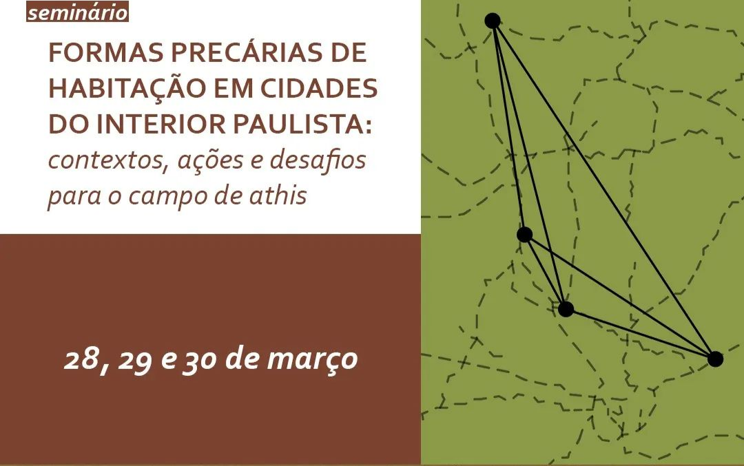 Nesta segunda (28), terá inicio o seminário com o conjuntos de temáticas sobre os contextos, ações e desafios para o campo de ATHIS (Assistência Técnica para Habitação de Interesse Social). A abertura do seminário “Formas Precárias de Habitação em Cidades no Interior Paulista” acontecerá em transmissão ao vivo, as 14 horas, através do canal: ATHIS no interior paulista – YouTube. Sua realização será dos dias 28 a 30 de março, dessa segunda a quarta-feira, com as apresentações e debates ocorrendo sempre as 19 horas, sendo o evento totalmente gratuito e com emissão de certificados.